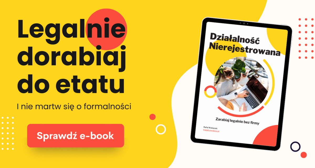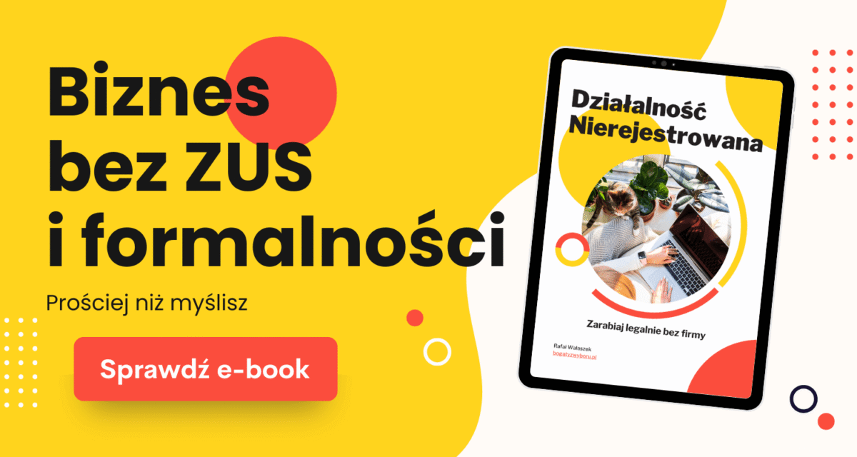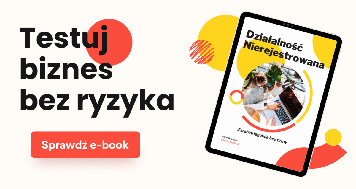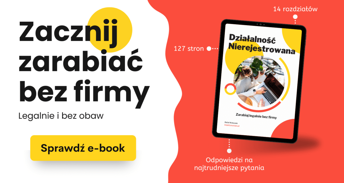 Tak poza odpowiedziami na te wszystkie pytania chciałbym Cię poinformować, że napisałem e-book, który jest kompletnym przewodnikiem po działalności nierejestrowanej.
